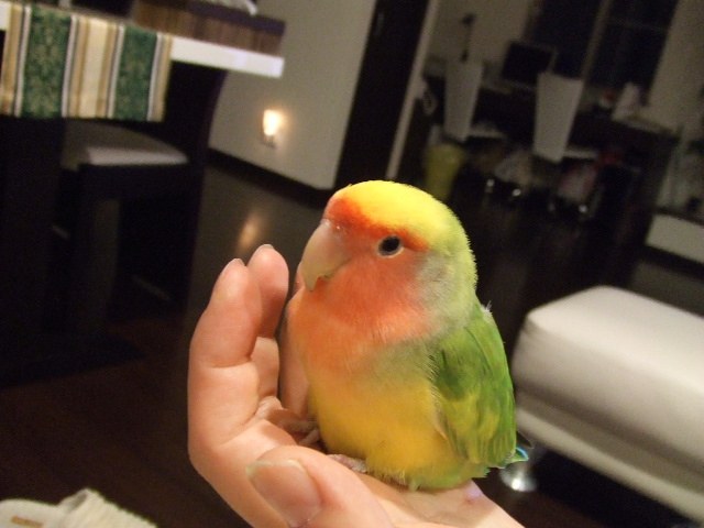 ボタンインコちゃんは若い鳥だ。