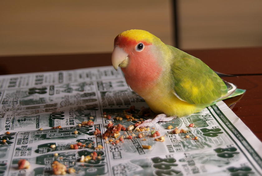 紙を噛む時のちょびの三角折りは、他のコザクラインコのブログでも