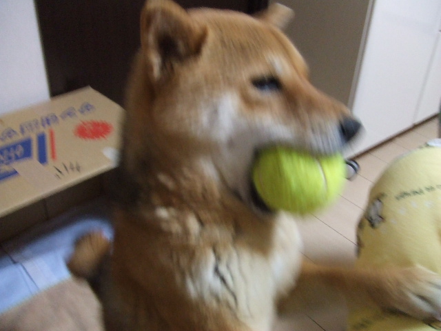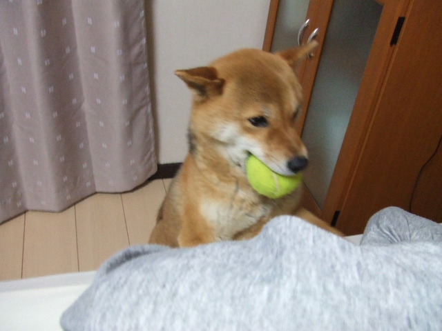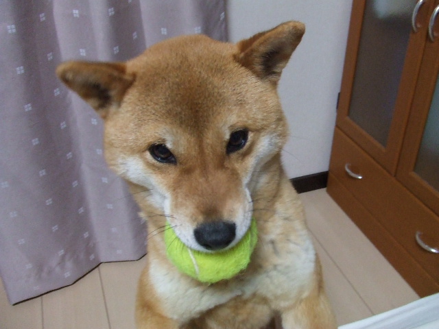 遊んでくれそうな雰囲気になると、テニスボールをくわえて持ってくる。