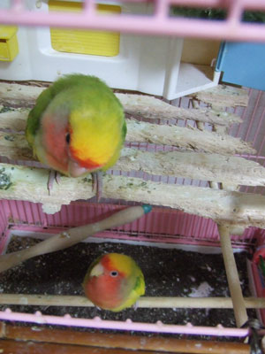 うちのコザクラの鳥かごは、結構でっかいタイプです。