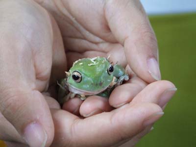<意外と乾いてるんです、カエル。>