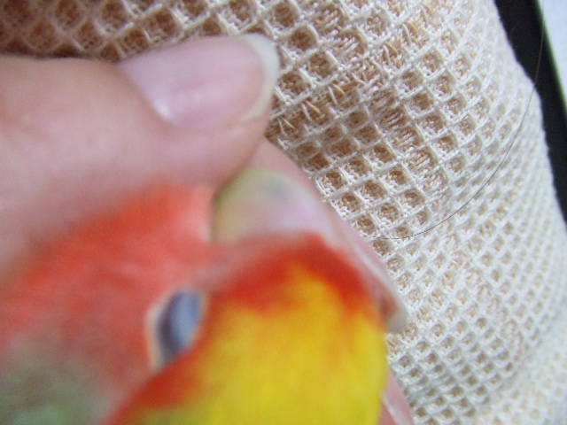 りんりんはクチバシの周りの羽がこげて