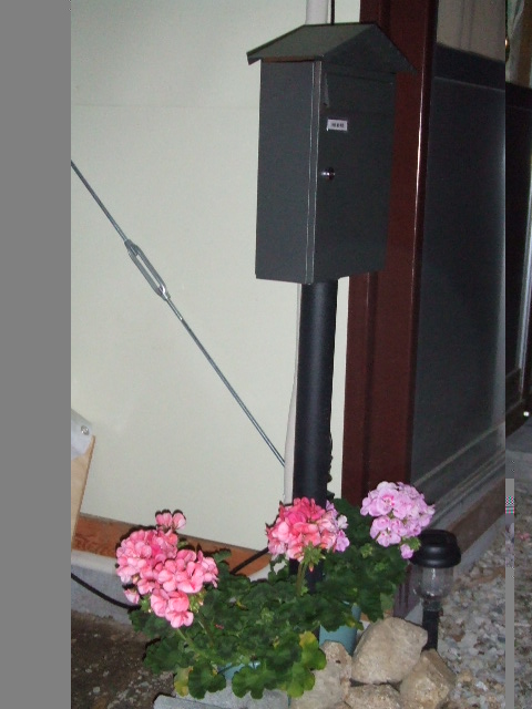春なのに家の周りが殺風景でさびしいから、ゼラニウムを2鉢買って、ポストの下に置いてみました。