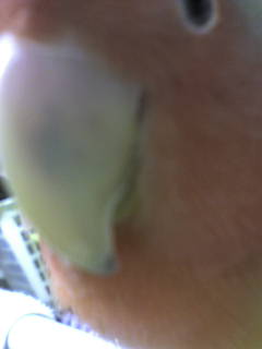 ちょびのクチバシの青あざは、一層濃くなりました。