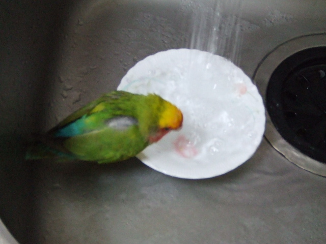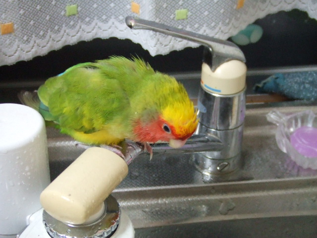 今日も水浴びしたそうな感じ(食器を洗っていると