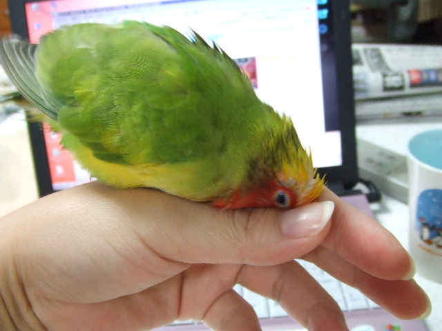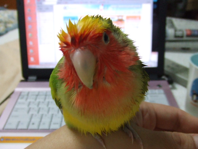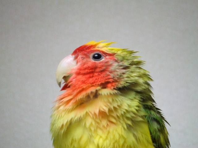 肩に乗ってちゃクチバシを見てもらえないよ。