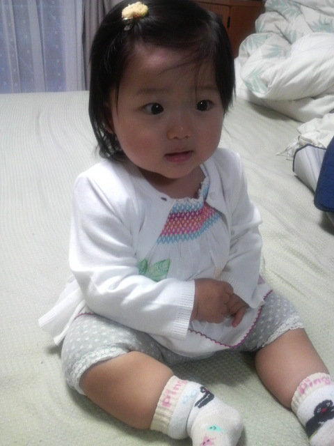 髪の毛が真っ黒で多くて、目をぱっちり見開いていて、私の面影は全くない。