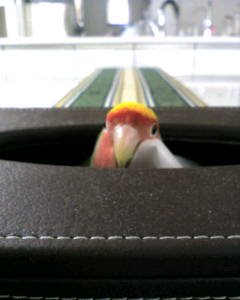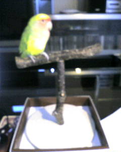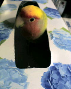 姉がバイオリンを返却しに家に来たとき、久しぶりに、コザクラインコのちょびが寝室にしている